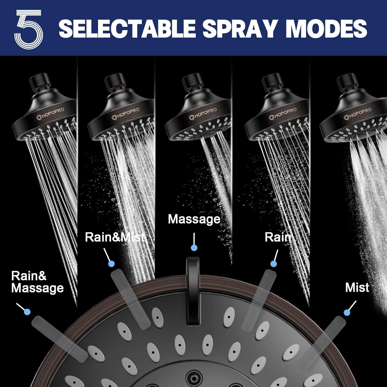 imageHOPOPRO 5Mode High Pressure Shower Head  The Washington Post NBC News Today TV Show Recommended  High Flow Fixed Showerheads 6 Inch Brushed NickelOil Rubbed Bronze