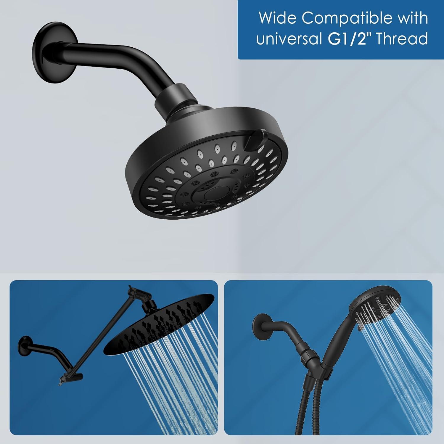 【US Standard Universal G1/2″ Threaded Interface】 The shower arm adopts the US plumbing standard 1/2″ US connection threaded, which is easy to install, suitable for all standard shower heads, and can also be easily connected to the Shower Arm Extension valve and other handheld shower head