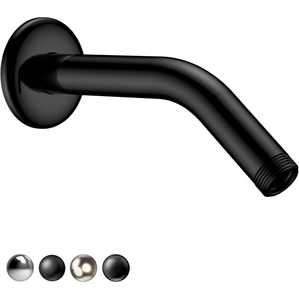 HOPOPRO 6 Inches Shower Arm with Flange – Wall Mount Replacement Angle Shower Head Arm For Fixed Handheld Showerhead – Including Teflon Tape – NBC News Recommended Brand – Stainless Steel – Chrome(Matte Black)