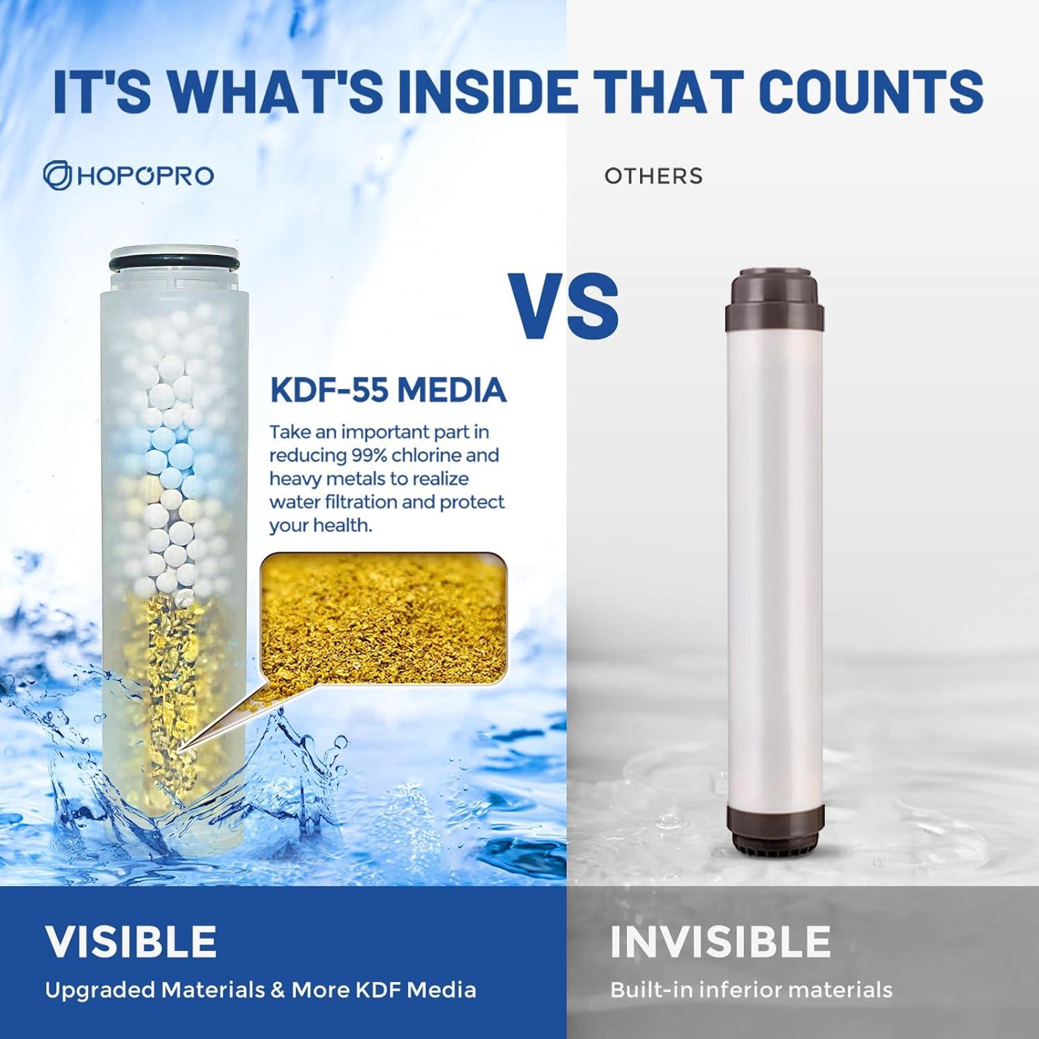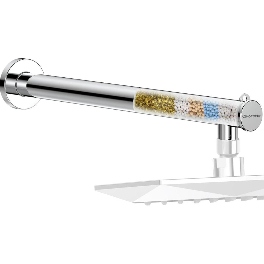 FITS ALL STANDARD FIXED SHOWER HEAD: HOPOPRO Fixed Shower head Series and the one you own. HOPOPRO 16 Inches Upgraded Filtered Shower Extension Arm built-in filter cartridge offer deep purifies the quality of your water for better skin, hair, and overall well-being. And we add more 5x powerful chlorine filtration, including CALCIUM SULFITE, REDOX MEDIA, VITAMIN C BALLS, ANOIN BALL, KDF-55, provides the best feeling for sensitive skin.