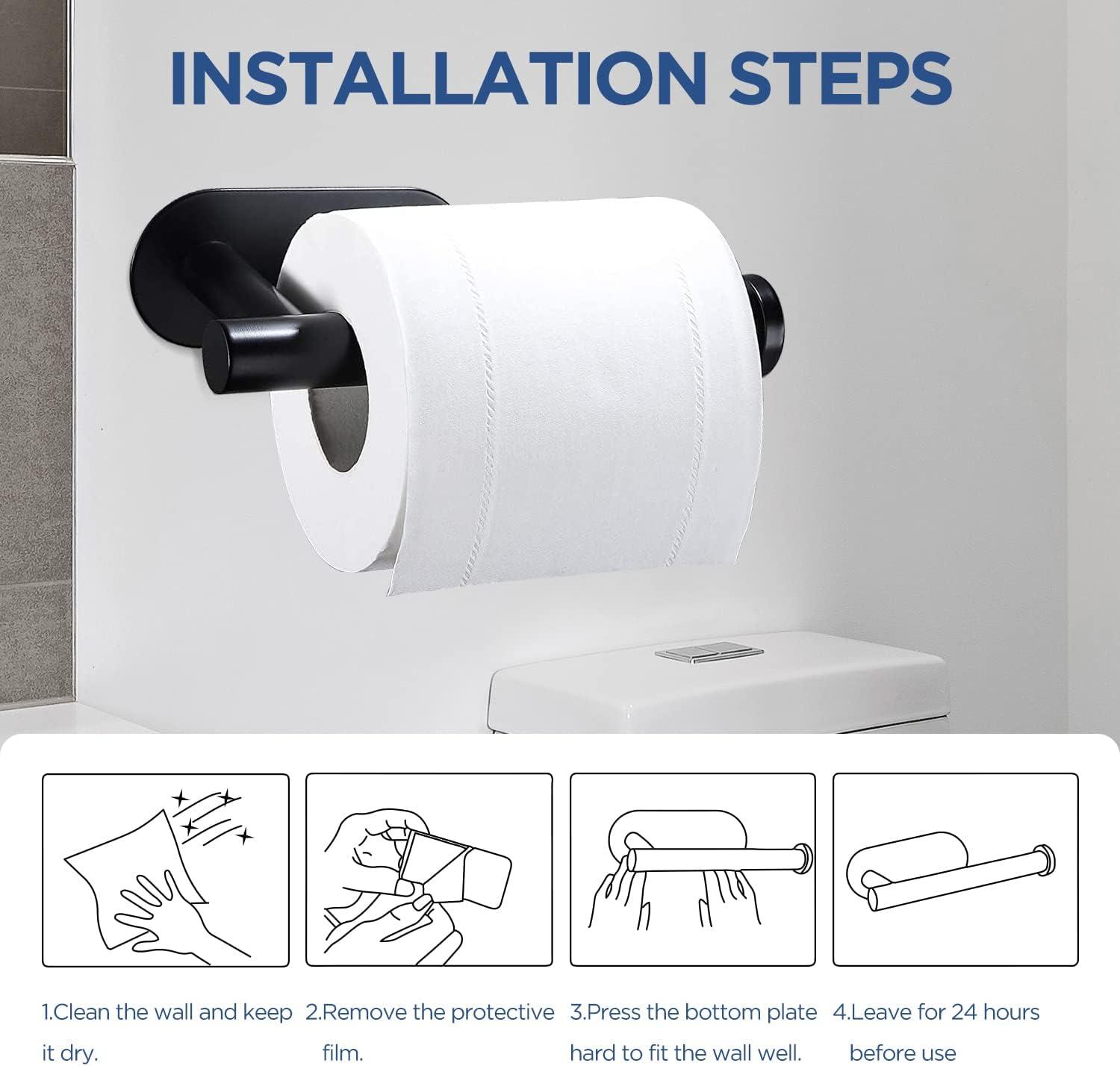 【SELF-ADHESIVE】There is self adhesive on the toilet paper holder base, which is strong attachment and waterproof. It’s max load is 2.5kg.
